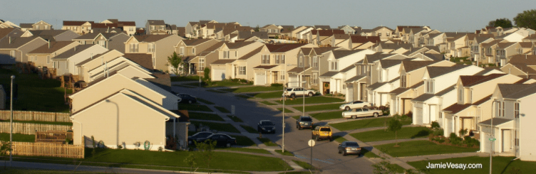 Very early in scouting, the idea of shooting Leisureland in Nebraska was indeed discussed. We scouted Omaha area Linden Estates, West Shores, and Newport Landing. The latter looked good. It could have been large-scale filming in Omaha or at least gathering plates to place digital mansions on empty lots. However budget and schedule forced these scenes shot elsewhere too.